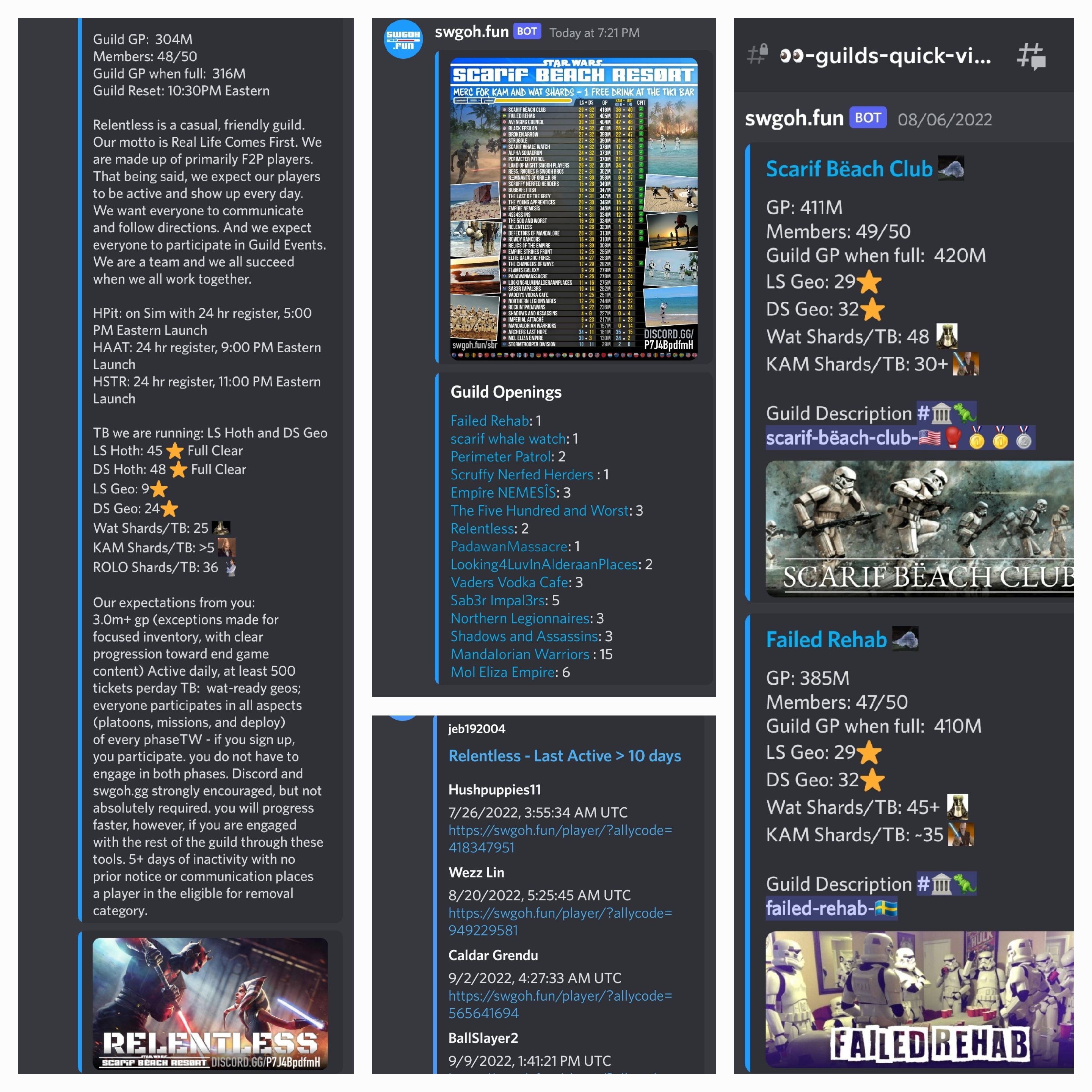 A tool built for the mobile game Star Wars Galaxy of Heroes to assist alliances in managing their guilds.